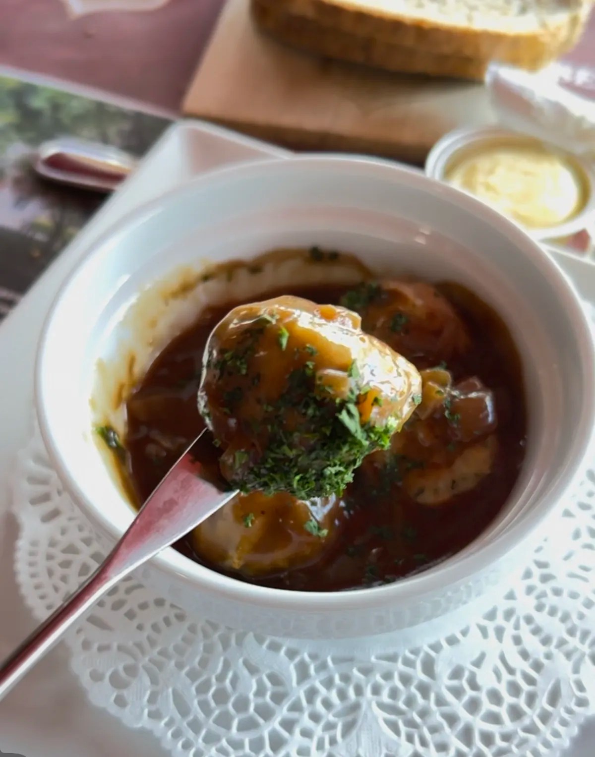 Frites belges, boulettes à la bière, bière Chimay