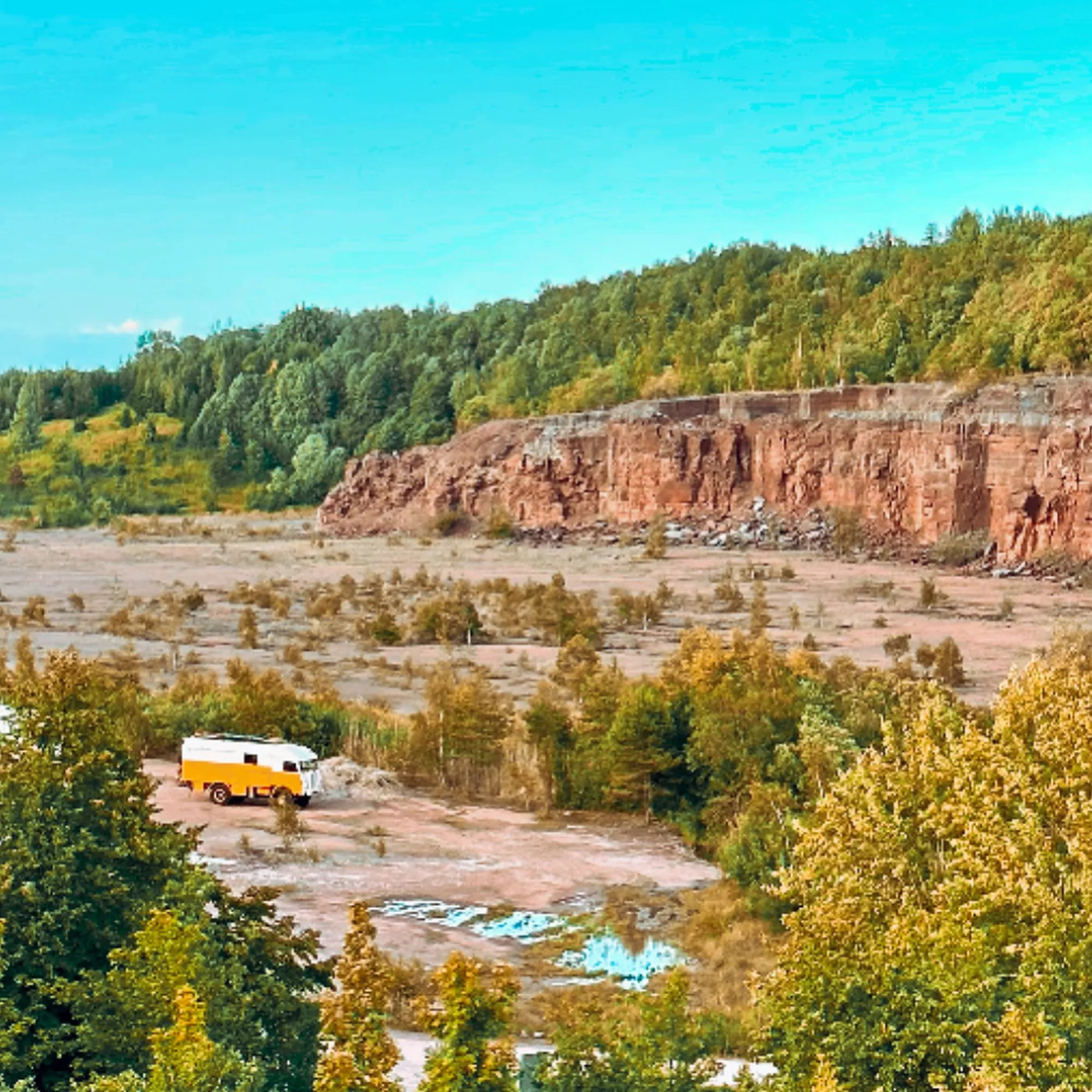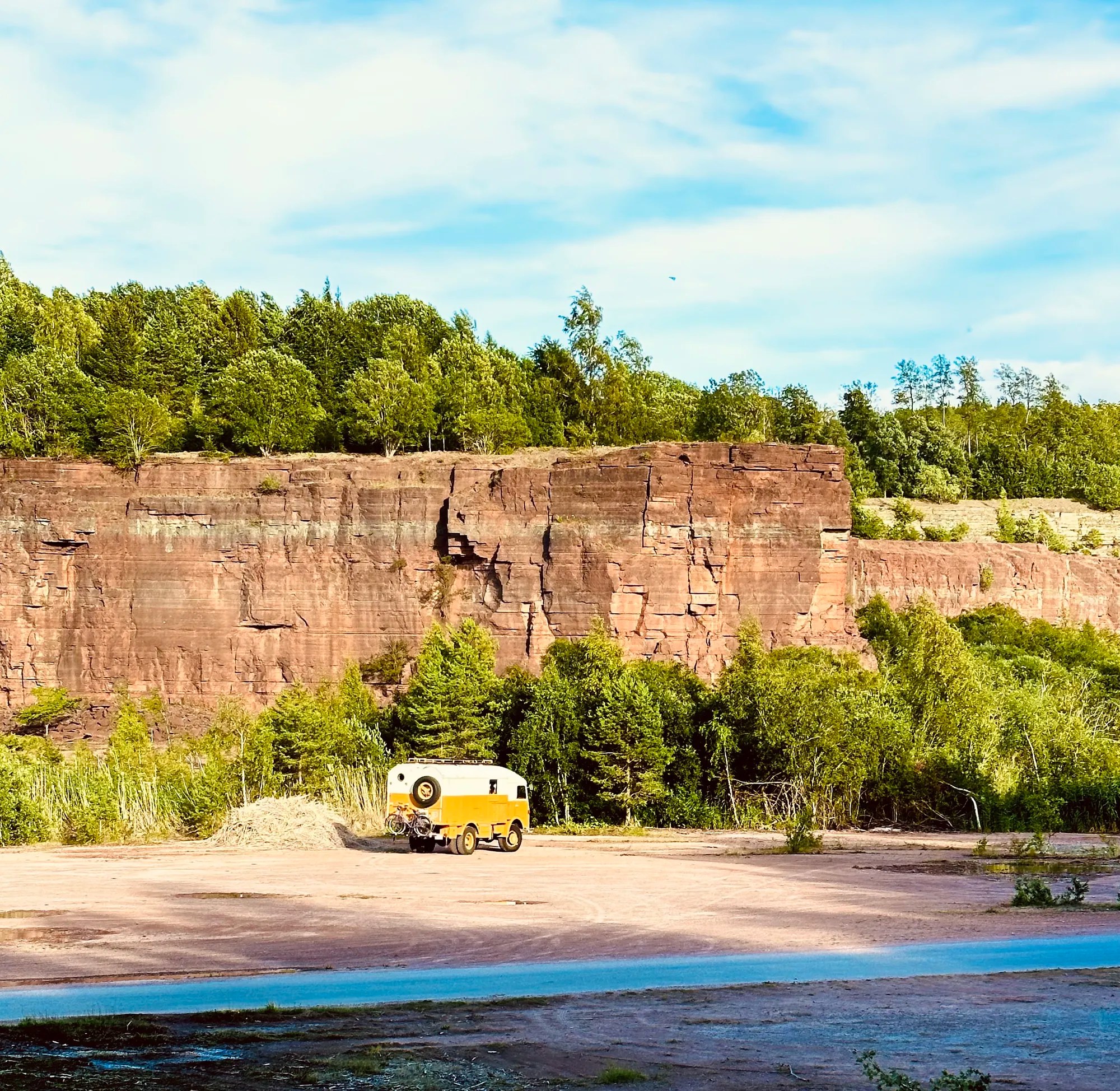 Lac Hjalmaren : Nous changeons de lac, en passant par le canyon « Sttenbrottet Kinnekulle », une petite carrière qui met Woody dans l’ambiance western !