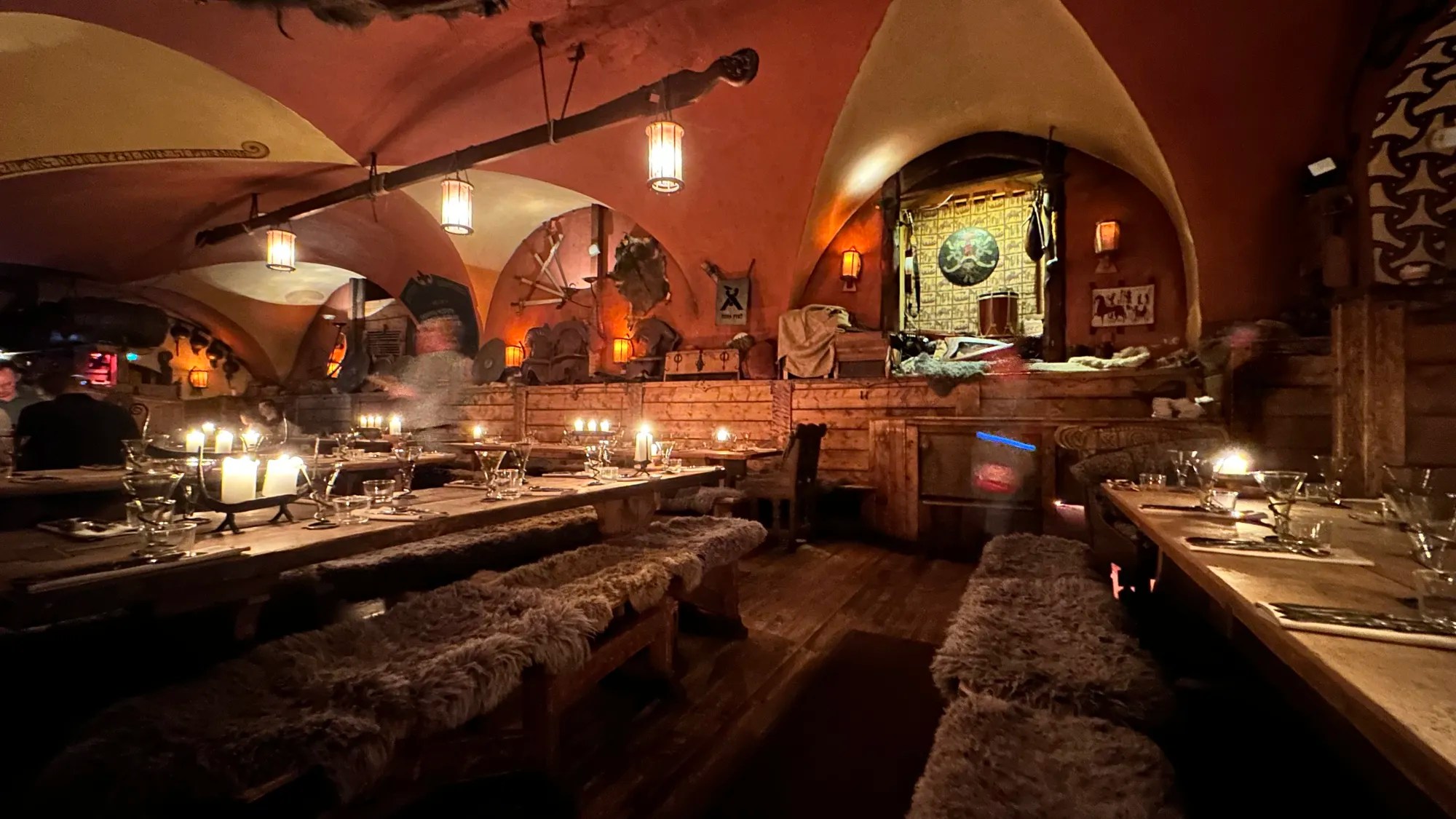 Le clou du dîner est l’unique restaurant viking au monde, « Aifur« , où nous dégustons renne, élan, cerf, légumes anciens & hydromel, tout en plongeant dans une ambiance historique grâce à des serveurs qui ambiance à la corne & des explications passionnantes sur les plats. Experience mémorable !