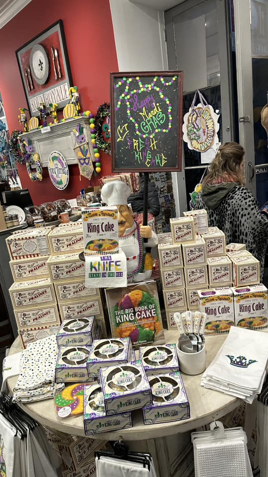 King cakes, épices cajun, poulet cajun, Poboy, crocodile, cuisse de dinde géante, chili de maïs, gumbos, beignets de la Nouvelle-Orléans, margaritas, burritos, noix de pecans caramélisées!