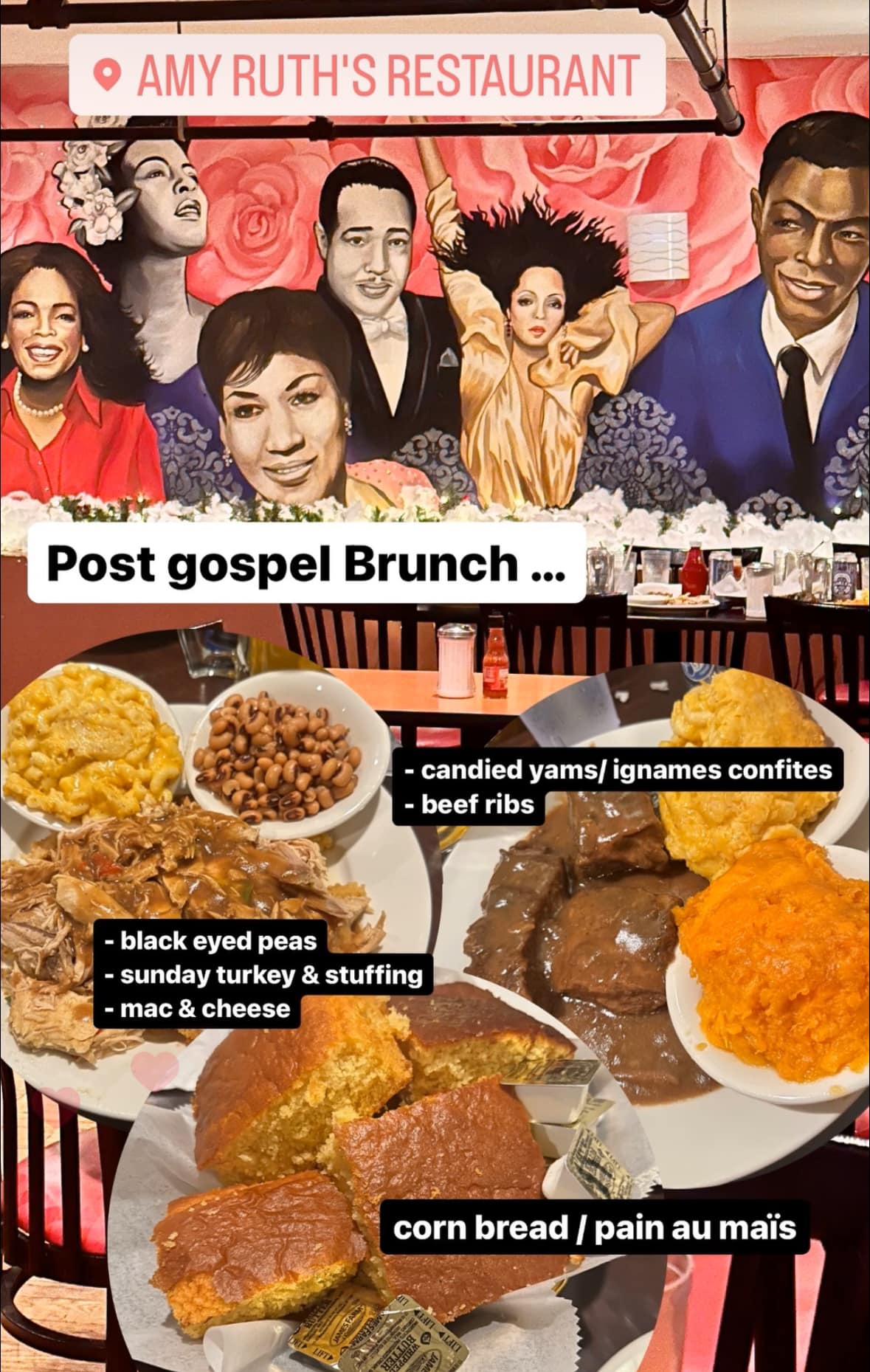 – Brunch Amy Ruth’s, soul food historique (après L’Eglise )