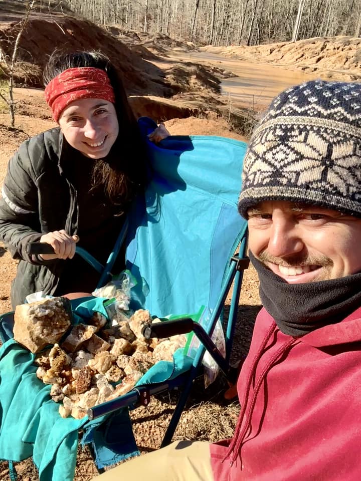 – Caroline du Nord : À Emerald Hollow mine , nous explorons les dunes rouges & la rivière d’Hiddenite pour y trouver des trésors: Emerode, Aventurine, Jaspe, Agathe, Unakite, Œil du tigre, Pierre de lune, …